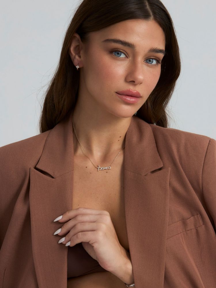 טבעת אליפסה משובצת בציפוי זהב 14K