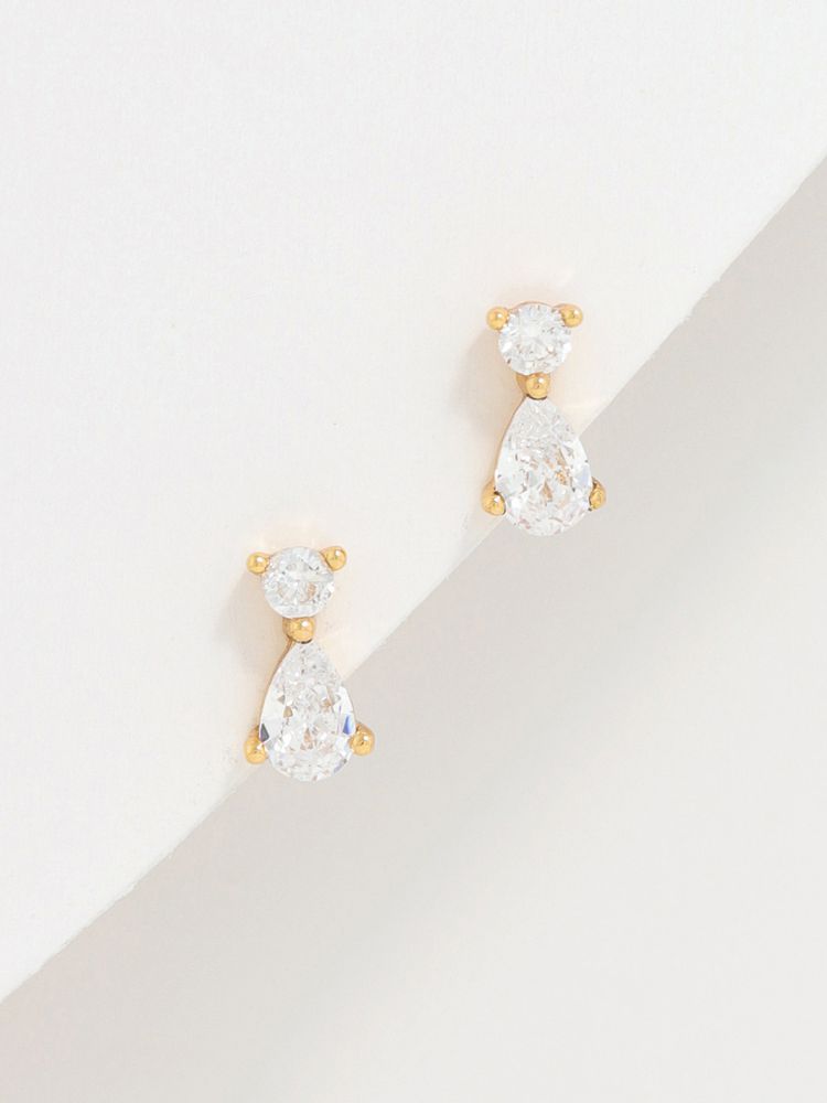 עגילי זירקונים צמודים בציפוי זהב 14K