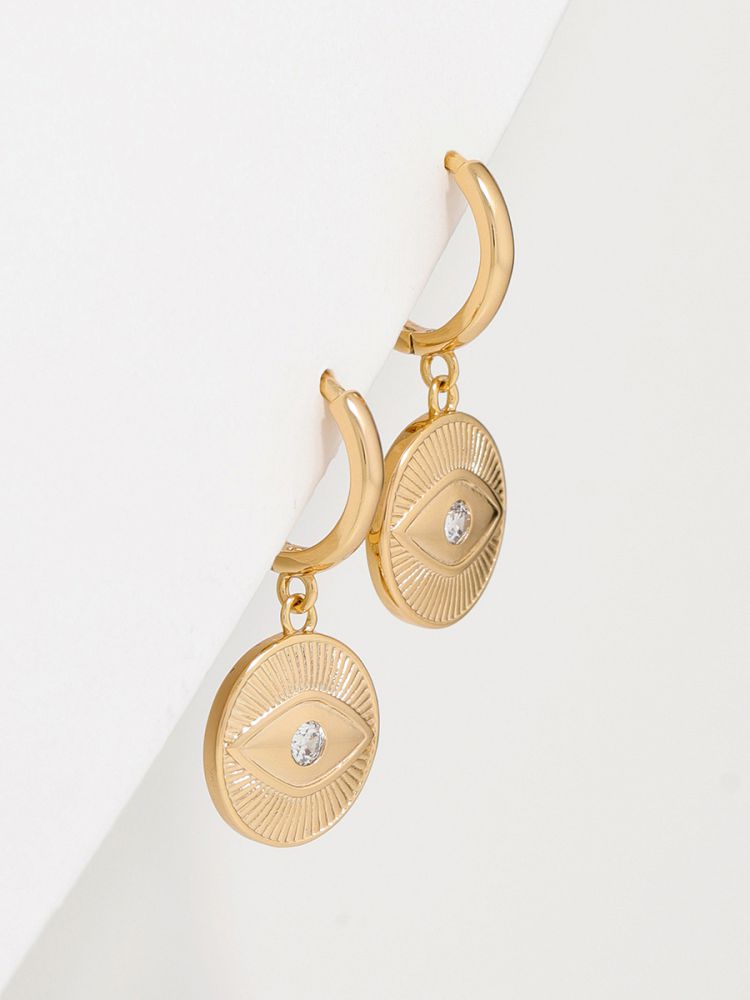 עגילי חישוק עם תליון עין בציפוי זהב 14K