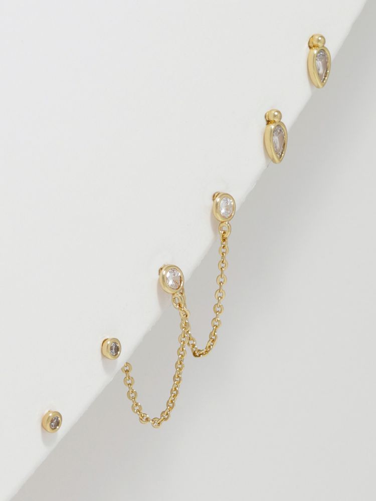 סט 3 זוגות עגילים צמודים בציפוי זהב 14K